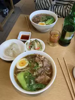 The broth is really delicious, and it's great to mix it with the free rice provided. If you find the taste a bit greasy, you can eat it with cucumber salad for a lighter taste.