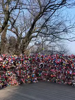 When I got off, a long staircase awaited me, and there were lots of "love padlocks" hanging along the way. ❤️