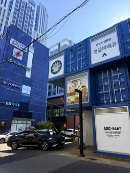 ABC mart, Nike, and Olive Young, which is popular among young people, all have their locations here. One is a street fashion Street Market selection store, and the other is a Market Hall with a casual style, and there is a sky bridge connecting the two. It is officially claimed that COMMON GROUND is the earliest container shopping mall in Korea, and its intention to target young people is obvious.