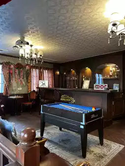 Hidden spot: Retro bar space in the central hall on the first floor → Photogenic spot with antique lighting and furniture