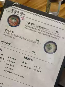 The main menu item is Chueotang, a loach soup dish. At Yonggeumok, the Seoul-style Chueotang features whole loaches in a chili pepper-infused broth, which is the more famous version. The Namdo-style Chueotang involves grinding the loaches with their bones and simmering them. Nowadays, many people prefer the Seoul-style seasoning with the ground loaches.