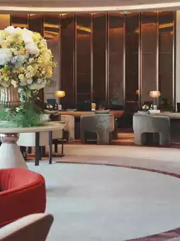 Upon entering the hotel, you can immediately feel the opulence. The public areas are often frequented by well-dressed elites. The hotel has also been a filming location for Korean dramas. The overall design, crafted by Moroccan interior design firm Humbert & Poyet, is very lavish—featuring extensive use of metallic lines and marble materials, with sofas upholstered in various velvet fabrics, and large floral arrangements adding to the luxurious and stylish ambiance.
