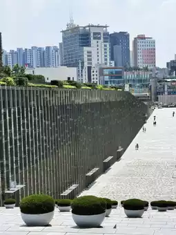 The highlight of my visit was the Ewha Campus Complex (ECC), a breathtaking underground structure designed by Dominique Perrault. Walking down the grand sloping entrance, flanked by tall glass walls, felt like stepping into a futuristic space seamlessly integrated into the natural landscape. The mix of academic facilities, cafés, and study areas created a lively yet serene ambiance.