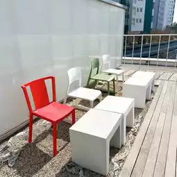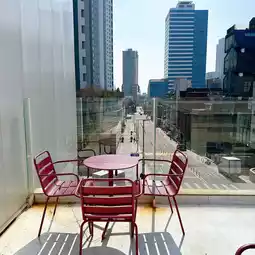 It's close to the station and on top of a hill, so the view from the rooftop is amazing🤭