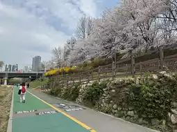 In April, when cherry blossoms are in full bloom, the pink tunnel that unfolds along the long Yangjaecheon walking path is truly spectacular!