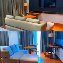 The room is large, clean and tidy, with simple decoration. It has a small kitchen with a microwave, kitchenware, dishes, washing machine and coffee machine, making it very convenient to cook. Good sound insulation, the toilet is separated into dry and wet areas!