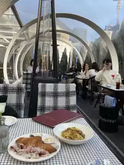 Two years ago, it was decorated with motifs of Aperol Spritz, and now, it is decorated with motifs of Café de Flore, a hot place in Paris, so you can enjoy brunch on the dome-shaped terrace~ ✨