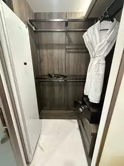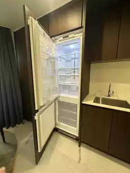 The room is fully equipped with a washing machine, dryer, oven, wine cabinet and clothes sterilizer. Despite the number of cabinets, only the toilet has a mirror. Also has 2 balconies.