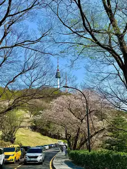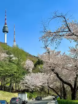 I started from Namsan Park Entrance. The road was really full of cherry blossoms, just like a scene from a Japanese drama. Although it is a bit steep, the scenery along the way is so beautiful that I didn't feel tired while walking. This method is especially recommended because the light in the morning is just right and the photos are beyond the scope of this article.
