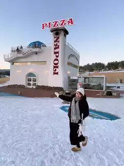 Since Seoul has rarely snowed and crowded in early February, we chose three days to the suburbs of Seoul, went to klxxk to book a bus from Myeongdong to take two hours to Yongpyeong Ski Resort stay two nights, take the cable car to Wangshan play snow, then go to nearby Daegwan Ridge Sky Ranch feeding sheep what what, photography windmill snow scenery, Korea's snow scenery is really beautiful
