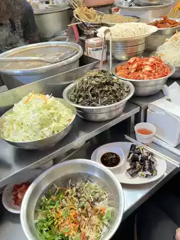 After the bold flavors of sannakji, I craved something hearty and familiar. Enter 보리밥 (Barley Bibimbap)—a simple yet flavorful dish made with warm barley rice, fresh vegetables, gochujang (red pepper paste), and a drizzle of sesame oil. It felt like a warm home-cooked meal, nourishing and packed with authentic Korean taste.
