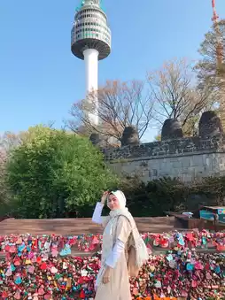 My tips is going to Namsan at least at 4pm (during spring season only) so you will have enough time to walk down the stairs and arrive at the viewing deck to see the sunset and the cherry blossom of course 🌅+🌸