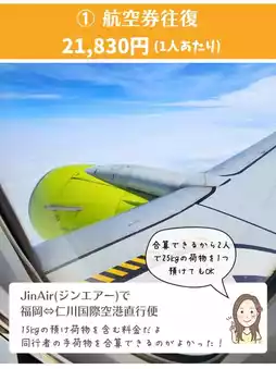 Fee for a direct round-trip flight from Fukuoka to Incheon International Airport✈
