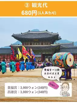 Admission fees for both Gyeongbokgung Palace and Changdeokgung Palace are about 340 yen each. It's cheap!