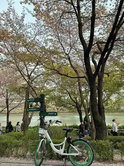 I went to Shihu Village today and it was really crowded. There were people everywhere on the roadside, some were taking pictures, some were resting, and many were having picnics. 🍱 The whole atmosphere was great, full of the breath of spring. At first I was wondering, it’s not the weekend, why does it feel like everyone in Seoul has come out to enjoy the cherry blossoms? I looked down at the time and found out that today is April 4th. No wonder everyone is free. It turns out it’s a holiday. No wonder it’s so lively.