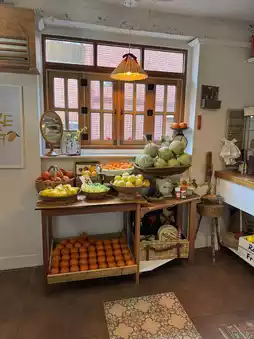 The cafe is located in a house near Gyeongbokgung Palace. The first floor is a stylish photo spot decorated with orders, fruits, and antique-style interiors, and the second floor is the cafe space. Outside the shop, fruit, tables, and chairs are displayed, which is cute!