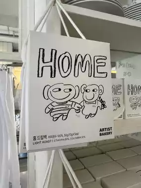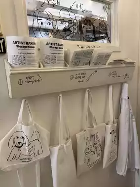 The interior with hand-painted signs and illustrations is so cute! There are many original goods for sale, such as mugs, aprons, and T-shirts, that are stylish and full of taste.