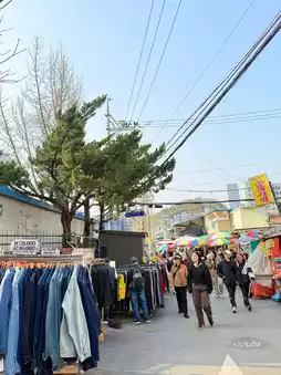 This is a pet market located in Seoul. It's a popular spot for many people. If you're planning a trip or wondering where to go, make sure to visit here first. You can find beautiful and affordable clothes, so it's a good idea to shop here before heading out. There are also plenty of snacks and things to see, so I recommend taking a look around. There are trees with blooming flowers, making it a great spot for photos. Especially on a nice day, you might lose track of time here. I highly recommend visiting at least once. 😆😆