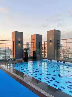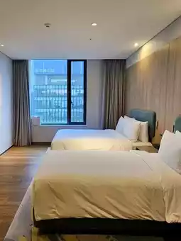 is in a great location in the Seocho District. It's about 100m to the subway station, making it easy to get to Myeongdong and Dongdaemun. There's also a convenience store downstairs, so you can buy snacks at any time of night. It is recommended to take a taxi to Gangnam Garosu-gil and COEX Mall. It's not expensive and only takes a few minutes. The front desk can help you call a taxi, and using Uber is also quite convenient. The hotel service is impeccable, and the staff are very friendly and fluent in English. They will greet you proactively when they see you at the hotel. The rooms are very clean and tidy, and the beds are especially comfortable. The rooms are fully equipped with TVs, refrigerators, hair dryers, and free Wi-Fi with a fast connection, so you can browse social media and watch shows without any issues. There is an outdoor infinity pool hidden on the top floor. It is not very big, but you can overlook the entire Gangnam skyline during the day. When the neon lights come on at night, it's a different feeling. The lounge chairs by the pool are a bit popular, so you can go earlier. There are also bath towels and a beverage cart. It's really great to relax and watch the night view after swimming. There is also a gym, which is open 24 hours. There are fewer people than at the pool, so the experience is not bad.