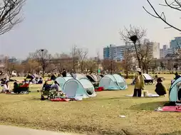 The lawns of Hangang Park were covered with colorful picnic mats, and every corner was occupied by families, groups of friends, and many couples. What left the deepest impression was the sight of people setting up picnic areas with tents, even on a weekday. They brought their own food, savoring classic Korean delights like fried chicken, kimbap, and coffee. It felt as if time had slowed down, allowing everyone to bask in the embrace of nature and enjoy a moment of leisure and relaxation.