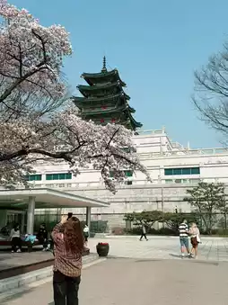 This is the area in front of the National Folk Museum of Korea in Seoul! This spot is great for taking photos or enjoying flowers, even just by visiting the front area. When I visited, it was the season when cherry blossoms were in full bloom, making the flowers incredibly beautiful and perfect for photography. Additionally, there were roses in front of the museum, making it an excellent place for flower viewing. The area is filled with structures that retain their traditional appearance, creating a picturesque setting for photos and offering plenty of information to learn. If you're planning a trip to Seoul, I highly recommend making this your first stop! 😆😆