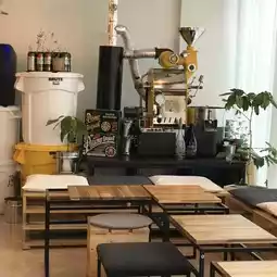 The store has a bright atmosphere but is quiet and comfortable, and there is a roaster, so the coffee smells great