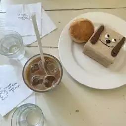 I ordered a scone, a cake with a dog design, and a cafe latte!