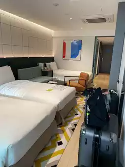 Three of us stayed in the modern room, and there was plenty of space to open our suitcases, and the clean interior made for a comfortable stay.