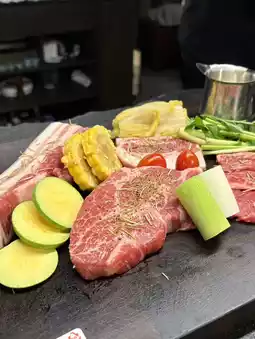 It comes with a set of various cuts of beef and pork, vegetables, sundubu jjigae, and side dishes, so it's a great deal!! !