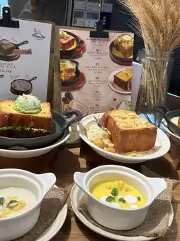 After much deliberation, we decided to order sliced bread, French toast, and soup for two. ♪