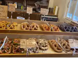 A shop where you can enjoy freshly baked pretzels🥨 in the store.