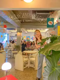 Seoul Parrot, a cafe near Seoul Forest, is charming for its vibrant colors and diverse desserts.