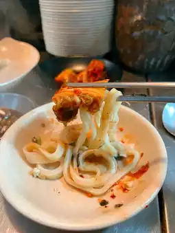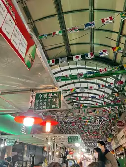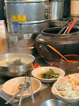 Key Points: Absolutely the kalguksu (noodles) and dumplings... Of course, everyone knows they're delicious, but the atmosphere of the market, with its rustic signage and the crowds huddling together, chatting with the owner, and feeling the owner's warmth—isn't that Korea? Haha. The portions are generous, and the prices are incredibly affordable! And if you order bindaetteok (mung bean pancakes) and tteokbokki (stir-fried rice cakes) with a glass of makgeolli (rice wine), your foreign friends will be blown away! 😆