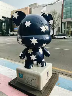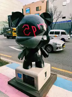 On the sidewalk along the main street, you'll find dolls of idol groups that built K-pop's popularity, including BTS, TVXQ, Girls' Generation, SHINee, 2PM, and EXO. Try finding your favorite doll and taking a photo! 🥰