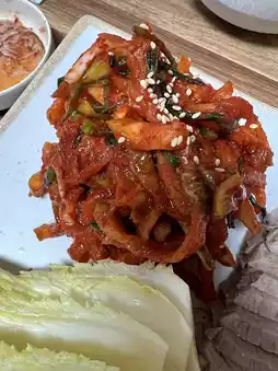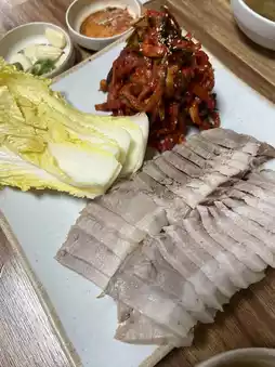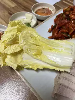 The bossam is very juicy and soft! The Korean cabbage that wraps it is lightly salted, so it's easy to wrap and tastes good