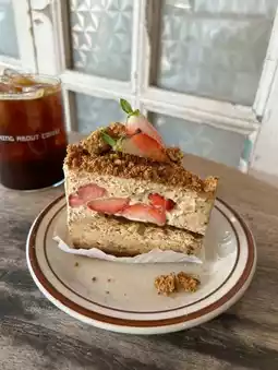 This time, I was looking for the "pistachio x strawberry cake" that is also a hot topic on social media. The contrast between the bright green and pink is cute, and the visual is uplifting just by looking at it. When you put your fork into it, you will find layers of moist pistachio sponge and fresh strawberry cream, and the flavor of the ingredients spreads softly with each bite.