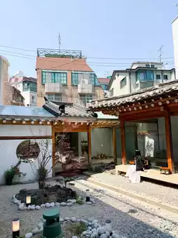 The environment is great, with a Korean house on one side and a modern industrial style on the other.