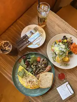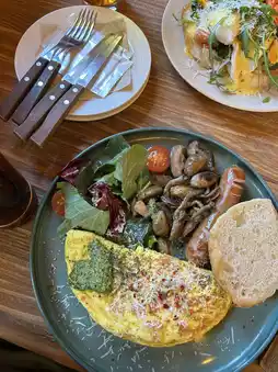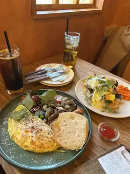 The omelette was fluffy and the stir-fried mushrooms were also to my liking🎶