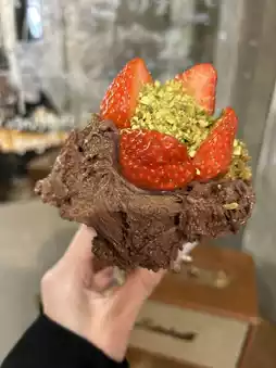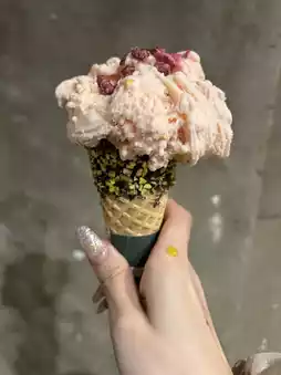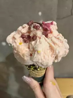 The cherry blossom-flavored gelato is slightly sweet, and the combination with the oil creates a refined taste.❤️