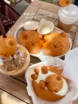 You can dip it in Kaimak, a milk-flavored cream, and honey, or in the floating bear-shaped cream...♡