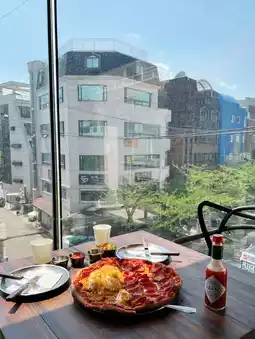 A 5-minute walk from Hapjeong Station, Pizza Neversleep has a fantastic atmosphere.