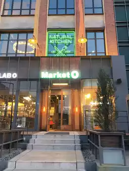 The second floor of the building is a restaurant and the first floor is a cafe and lab.