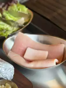 In addition, the grilling staff at the table will constantly wipe the baking tray with lard, not only at the beginning but also during the grilling process, in order to keep the baking tray oily so that when the meat is placed on the baking tray at more than 200 degrees, the gravy will not overflow. The amount of lard used is huge, and every morning during the trial operation, the lard has to be cut into full pieces.