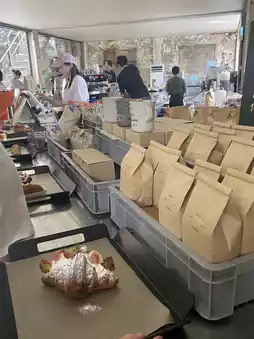 The freshly baked croissants are filled with fresh cream and plenty of seasonal fruits. It was fig season.