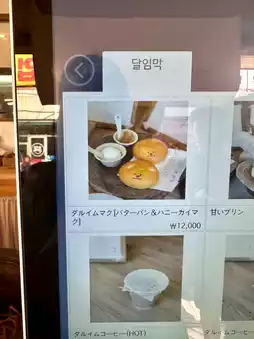 You can buy the bread through the kiosk located on the right-hand side of the store, and the purchase process is available in Japanese as well! The cute bear butter bread comes in a set of two, along with honey, for 12,000 won (approximately 1,300 yen). After purchasing, you can enjoy your treats on the rooftop terrace 🌸. However, be cautious as the stairs leading to the rooftop are quite steep ⚠️. Coffee is also available for purchase, making it a great spot for a relaxing break ✨.