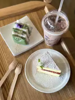The cafe spans five floors and serves food, desserts, and beverages. You need to order your food on the first floor and bring it up to your table yourself.
