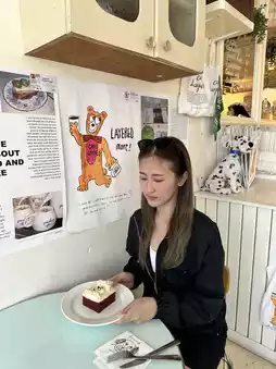 When we entered the shop, the first thing we saw was the bread, which looked very delicious. There were many types of desserts to choose from. We chose a piece of cake and were not disappointed.
