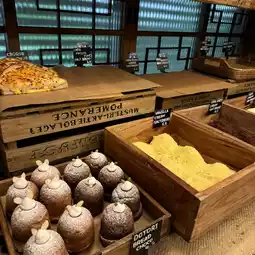 A mysterious and cute character will greet you, and when you enter the store, you will see a row of acorn-shaped baked goods and breads🤍