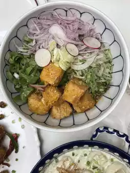 If you think vegan food might lack flavor, think again! Plantude offers a variety of delicious vegan dishes that will change your mind. From bracken pasta, truffle seaweed cream tteokbokki, tofu gangjeong, eggplant rice bowl, pasta, soft tofu stew, veggie curry, to pad thai, the menu is diverse and satisfying. I've tried almost all the dishes, and there were hardly any misses. Among the numerous restaurants in Coex, the long lines here speak for themselves—clean, tasty, and worth the wait. However, the tofu gangjeong can occasionally be overly salty.