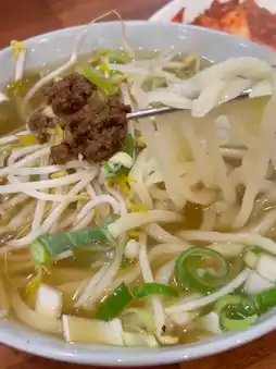 The kalguksu is not spicy at all, but the kimchi is a light kimchi with a strong raw garlic spiciness! I really like it lol